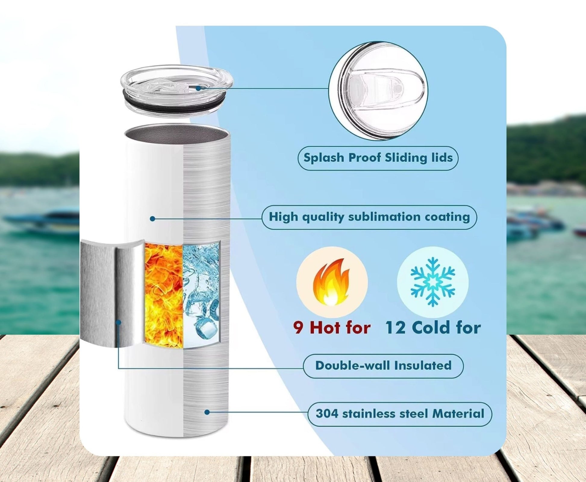Material: Double-wall vacuum insulated stainless steel with eco-friendly reusable straw. BPA-free and non-toxic materials