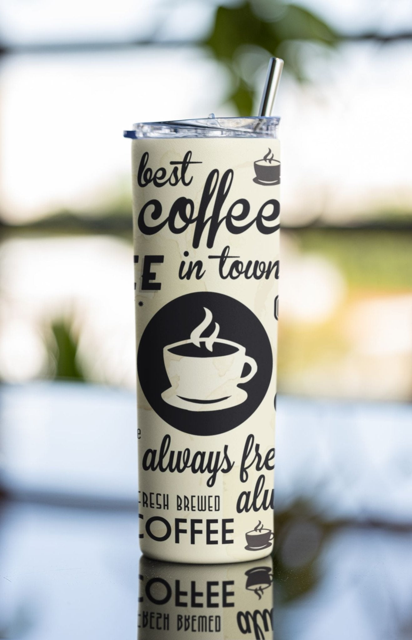 20 oz Skinny Coffee Travel Tumbler with Lid and Straw - Sip and Swag #031